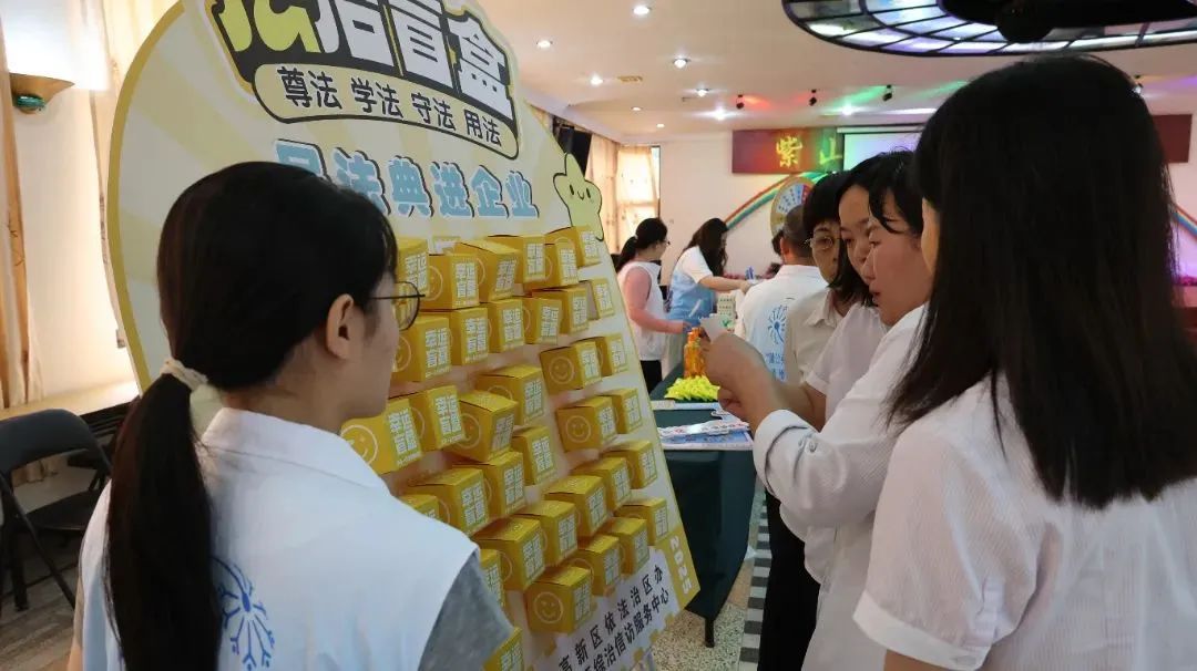 活動(dòng)現(xiàn)場(chǎng),紫山職工有序排起長(zhǎng)隊(duì),紛紛體驗(yàn)法治猜謎、法治盲盒、法治飛行棋、我與“民法典”合個(gè)影、法治大轉(zhuǎn)盤等精彩趣味的普法小游戲,紫山員工不僅學(xué)習(xí)了法律知識(shí),也兌換了實(shí)用的普法宣傳小禮品。