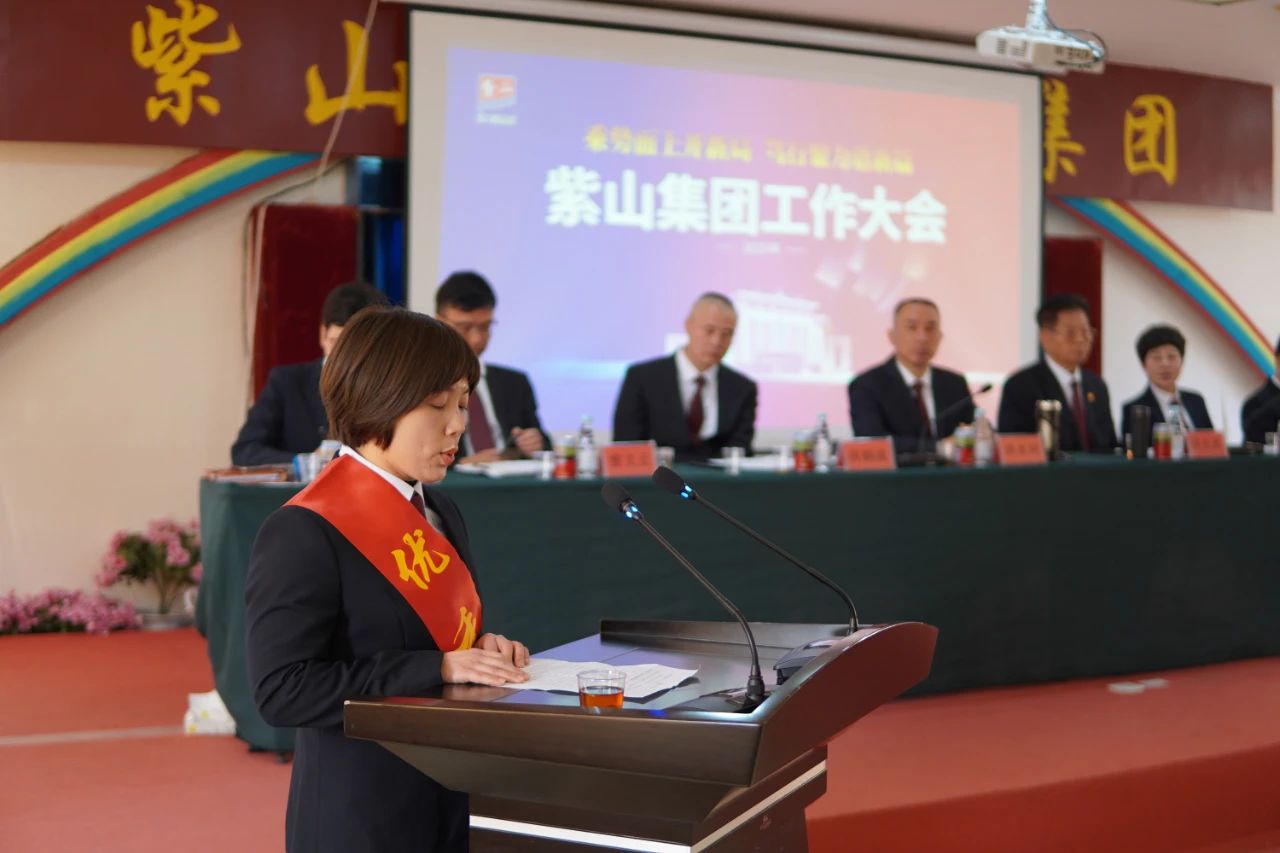 1月15日,在堅定、充滿信心的《紫山之歌》歌聲中,紫山集團2025年度工作大會隆重召開。董事長洪長水與總裁洪水河等集團高管出席了會議,會議由副總裁高瓊珊主持。